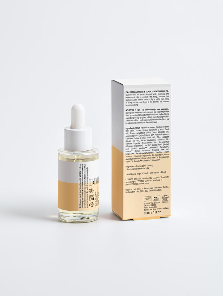Utöka din hårvårdsserie med Rosemary Hair & Scalp Strengthening Oil – en näringsrik hårolja framtagen för att vårda både hår och hårbotten. Denna naturliga formula är berikad med rosmarinolja, mandelolja och pepparmyntsolja som tillsammans stärker håret, stimulerar hårbotten och tillför intensiv näring. Oljan hjälper till att återställa glans, minska torrhet och göra håret mer motståndskraftigt mot slitage.